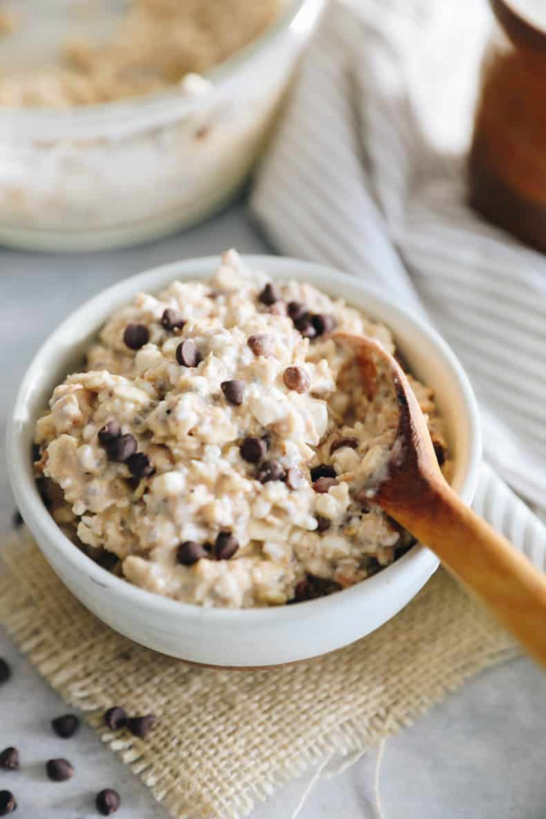• High in protein – one serving of this cottage cheese cookie dough overnight oats recipe includes 18 grams of protein! To put that into perspective that’s more protein than two large eggs.