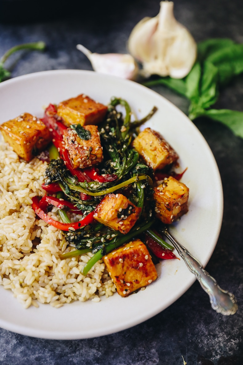 Don’t like tofu? Feel free to replace with any other protein. Thai basil chicken, beef or even chickpeas would work great. You can use pre-cooked or follow the same instructions as the tofu to get a nice crispy taste on your protein. You can also top it with a fried egg!