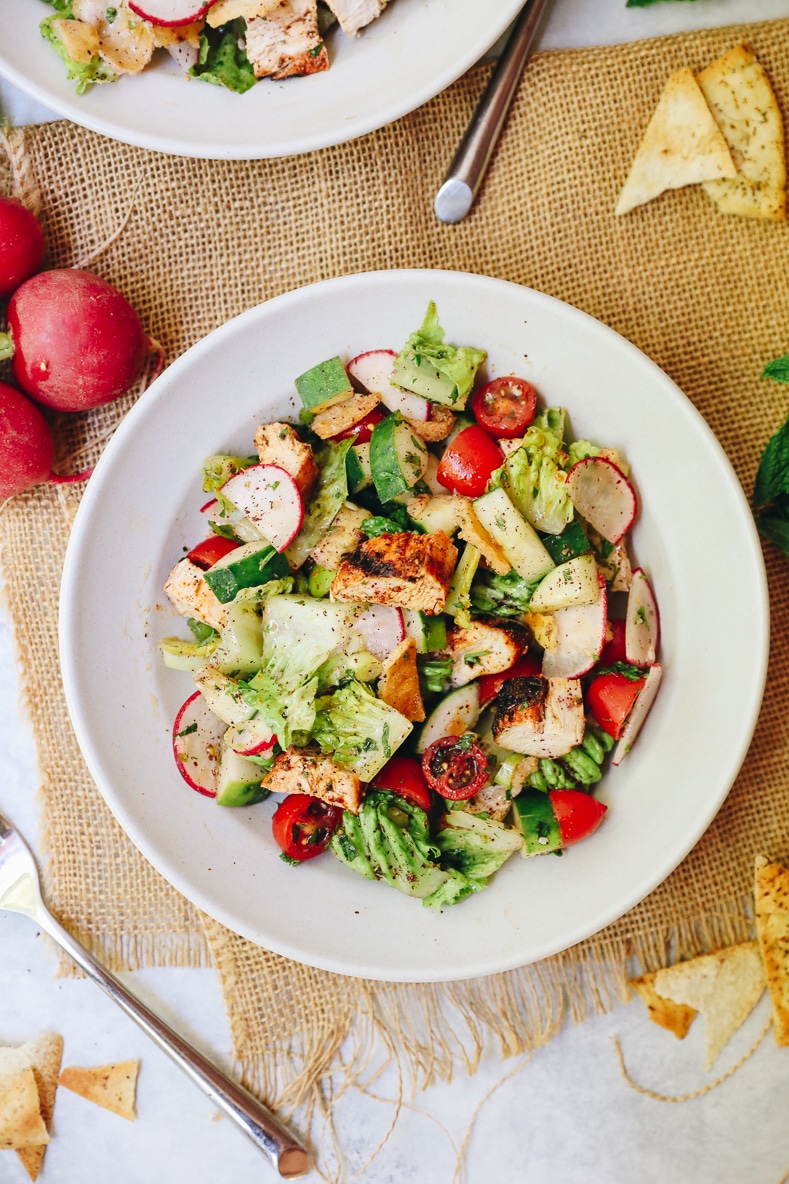 Every Spring I’m inspired to look for new simple delicious salad recipes! I love Fattoush salad but for some reason I’m always intimidated to make it. Your recipe was so easy to follow, had simple ingredients and tasted better than any takeout I’ve had. The grilled chicken was a huge hit with my family too. Thanks for some much for the recipe!