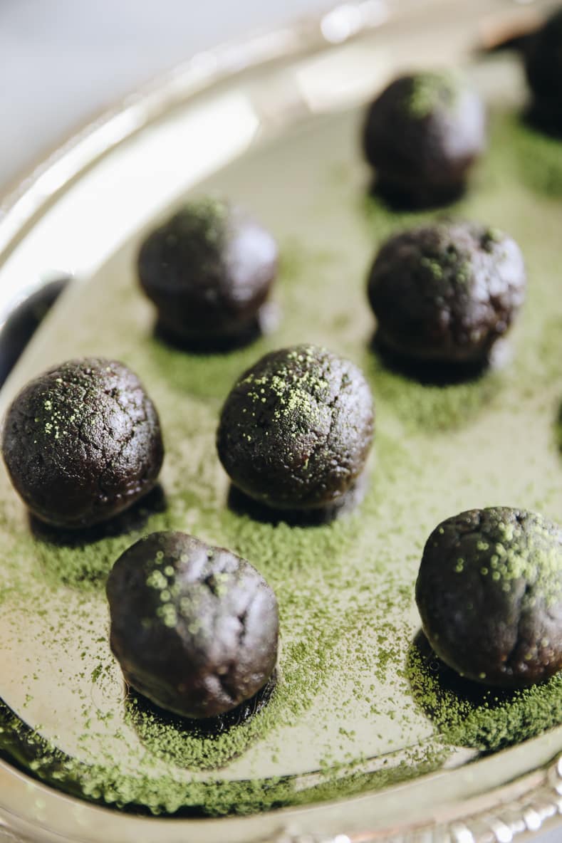 - Roll into 10 small balls and dust with more matcha powder.
