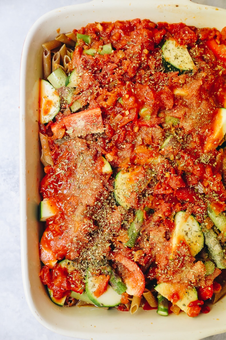 • Make it gluten-free! Just swap the whole wheat pasta for gluten-free pasta (I find brown rice works best). You may need to slightly adjust baking time.
