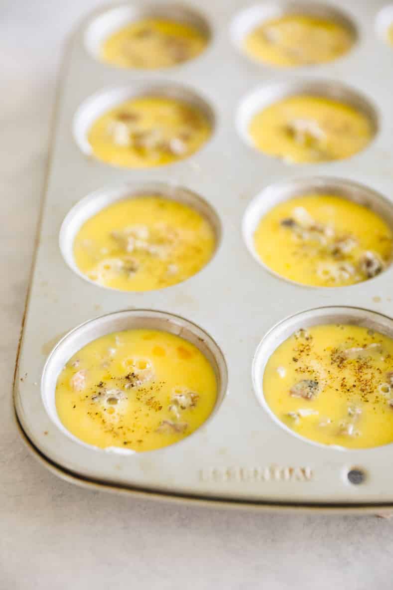 STEP 5: Top each muffin cup with the egg mixture until cup is full.