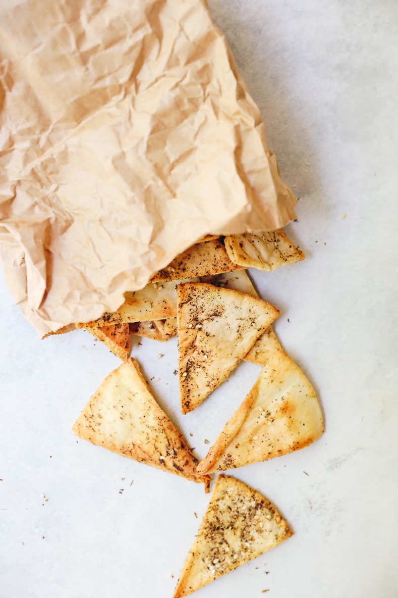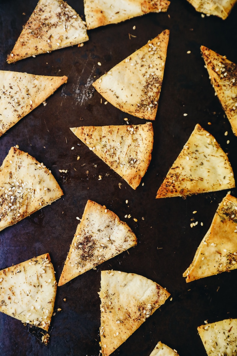 Honestly, I’m more of a solo chip gal and especially with the za’atar flavor on these homemade pita chips. However, if dipping is more your thing, here are a few options of what to eat with these baked pita chips: