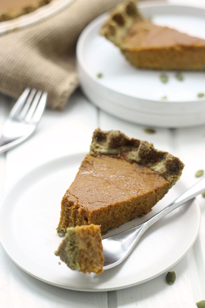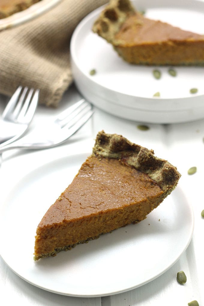 Paleo Pumpkin Pie in a Pumpkin Seed Crust