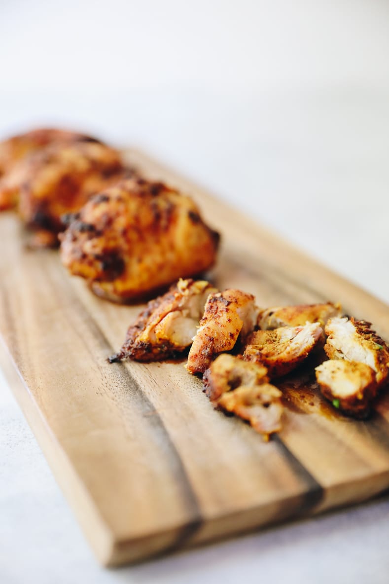 - 1 1/4 lb boneless, skinless chicken thighs (roughly 4-5)