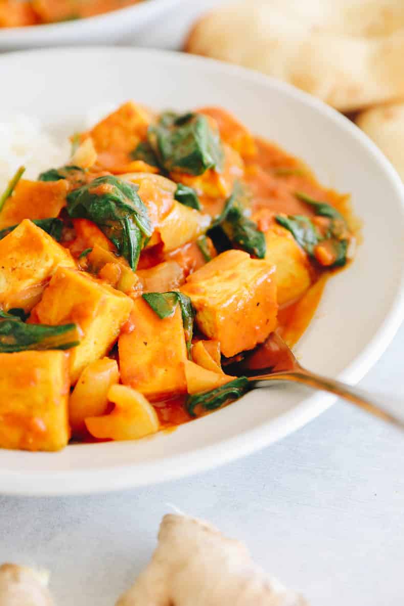 What makes this tofu curry recipe the best is definitely the texture of the tofu. The extra step of pan frying the tofu cubes gives them a crispiness that pairs perfectly with the flavors of the curry spices. This recipe is also fully vegan and can easily be made gluten-free by using tamari in place of soy sauce.
