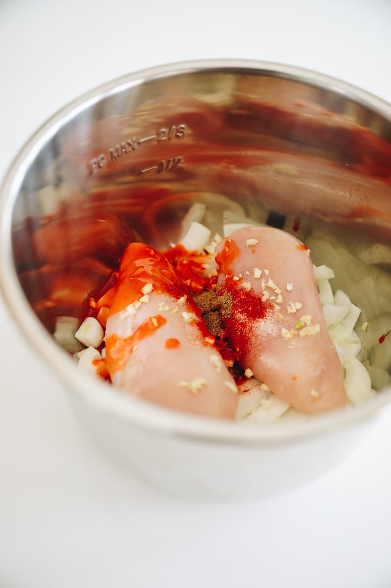 STEP 1: In the Instant Pot combine all chicken ingredients except lime. Close top, seal vent and set to pressure cook in high for 10 minutes.