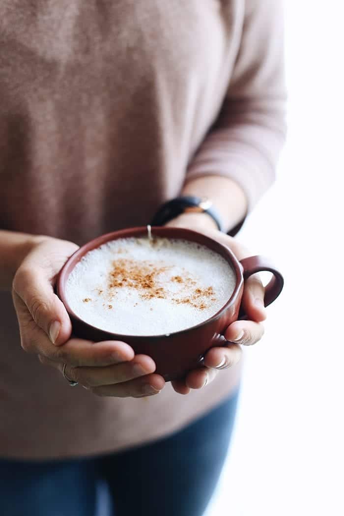 - Hot, foamy milk – you can use whatever kind of milk you like but I prefer almond or oat milk in my lattes