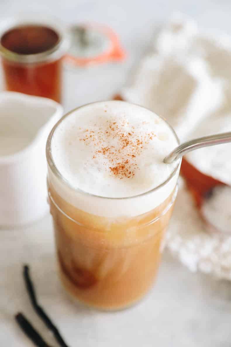No blender? No problem! – use a handheld milk frother or immersion blender instead to froth your vanilla creamer.