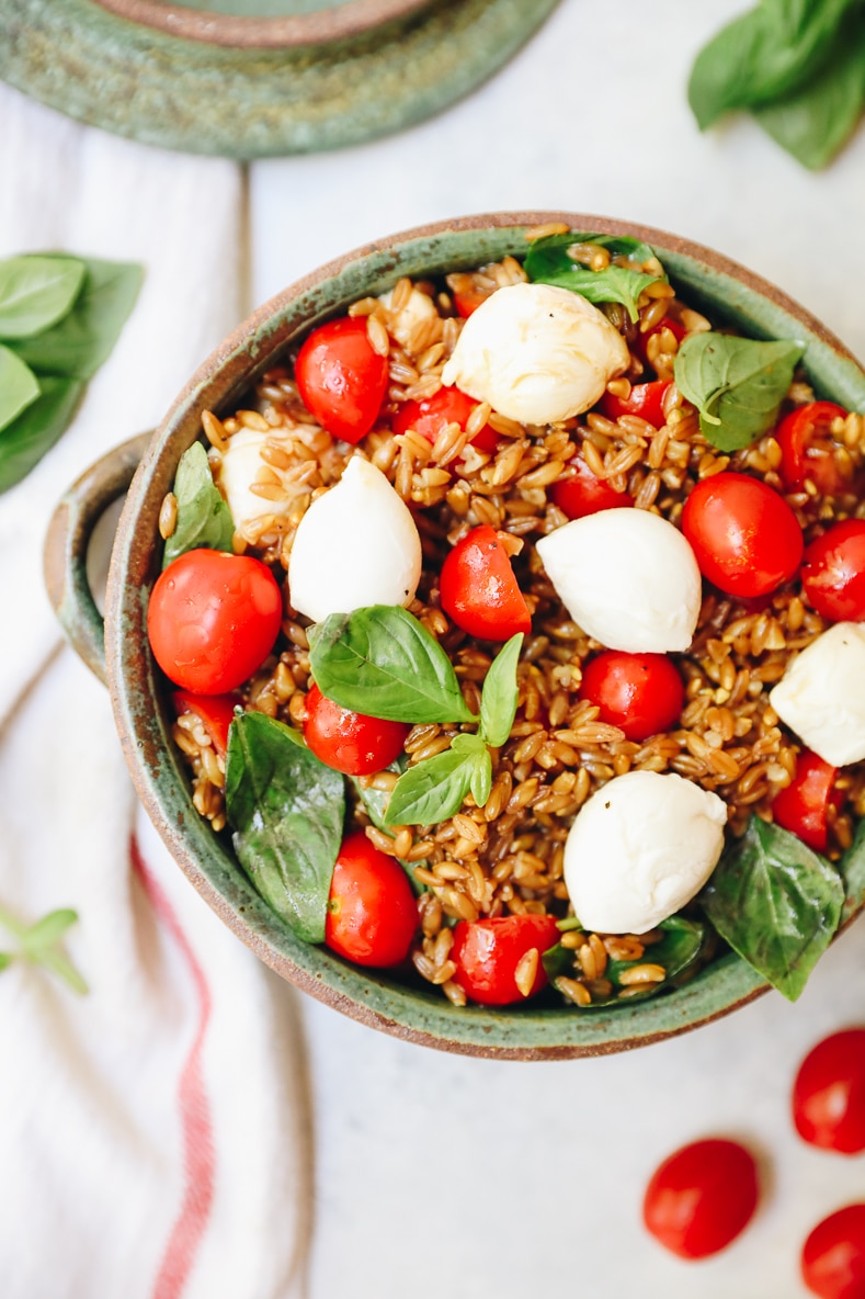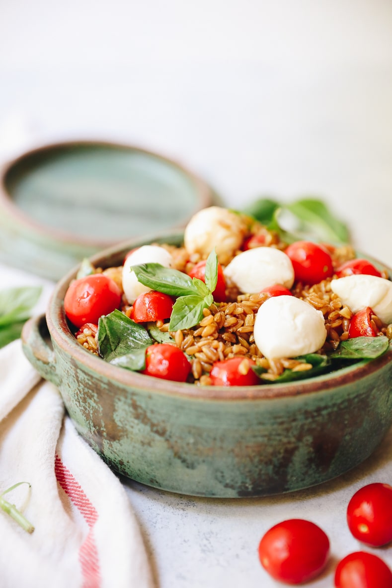 That’s it! This farro caprese salad will keep in the fridge for up to 5 days.