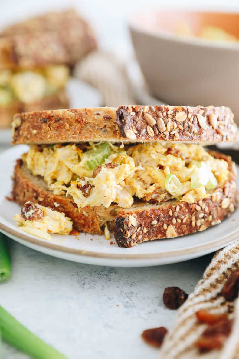 - Flavor-packed – The flavors of the curry spice mixed with the sweetness of the raisins is unexpected but honestly so delicious! You’ll be surprised by the unique taste and wonder how you ever enjoyed boring old chicken salad before!