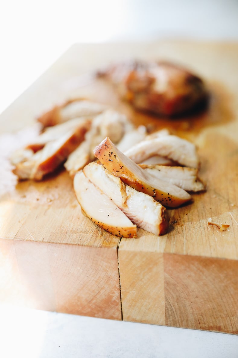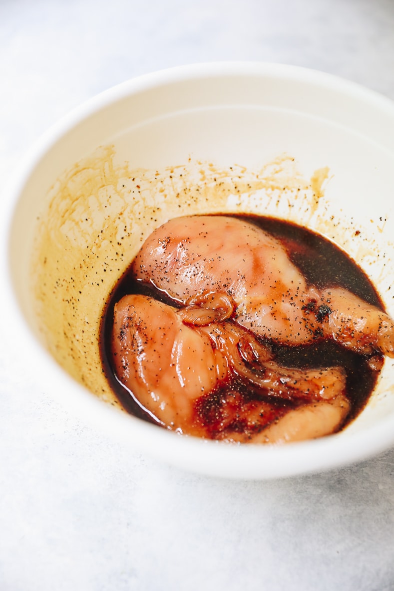 - chicken – boneless, skinless chicken breasts marinated in a delicious combination of soy sauce (or tamari), hoisin sauce, sesame oil and pepper.