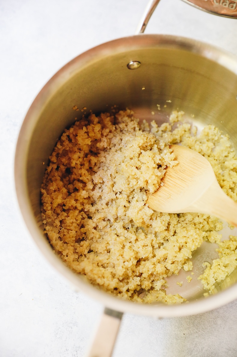 - Remove quinoa from heat and let sit with top on for 5 minutes.
