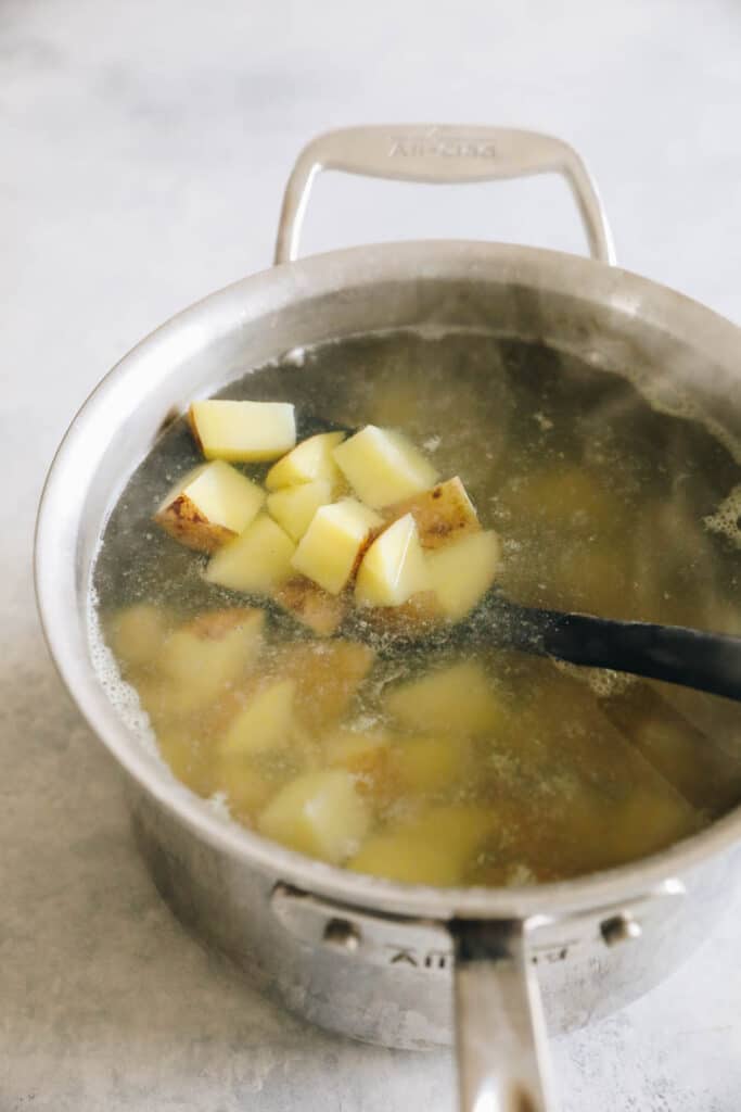 This helps to ensure that the potatoes don’t overcook.