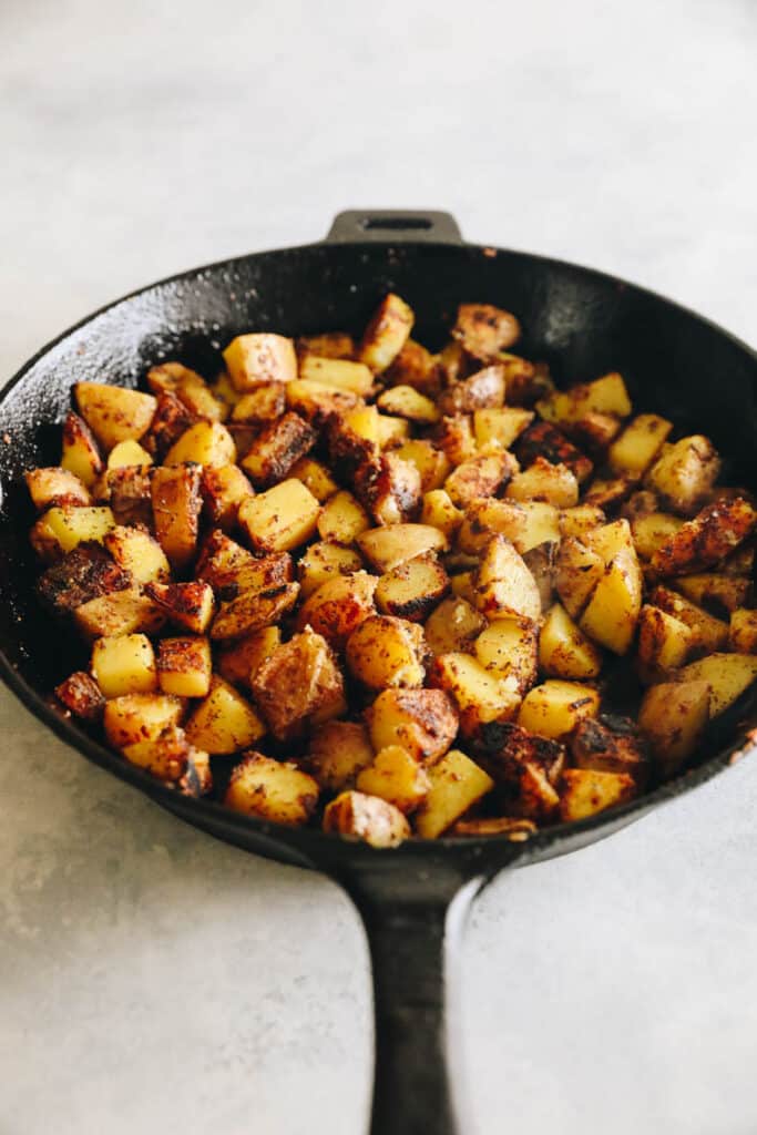 - Cook on stovetop for about 10 minutes or until potatoes have reached desired level of crispiness. Stir occasionally.