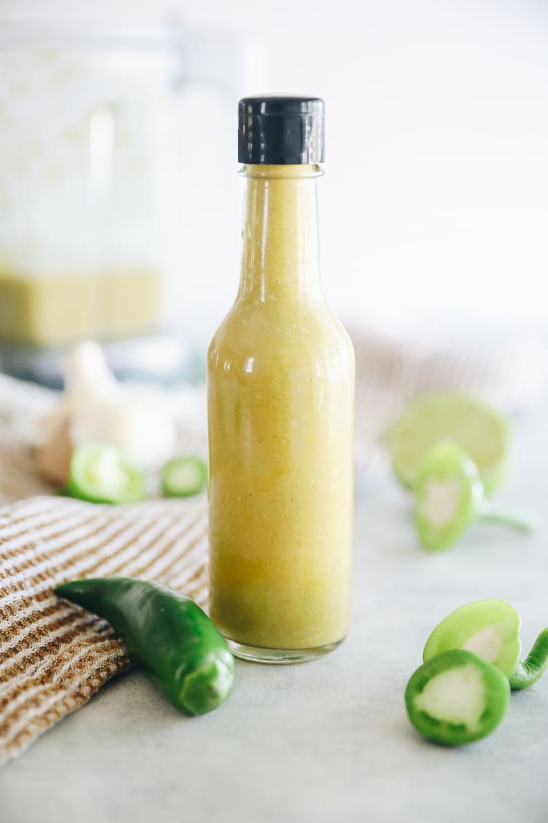 Make your own hot sauce with this Jalapeño Hot Sauce Recipe! This homemade hot sauce recipe is made with fresh jalapeños and lasts several months in the fridge so you can add a spicy kick to all your meals.