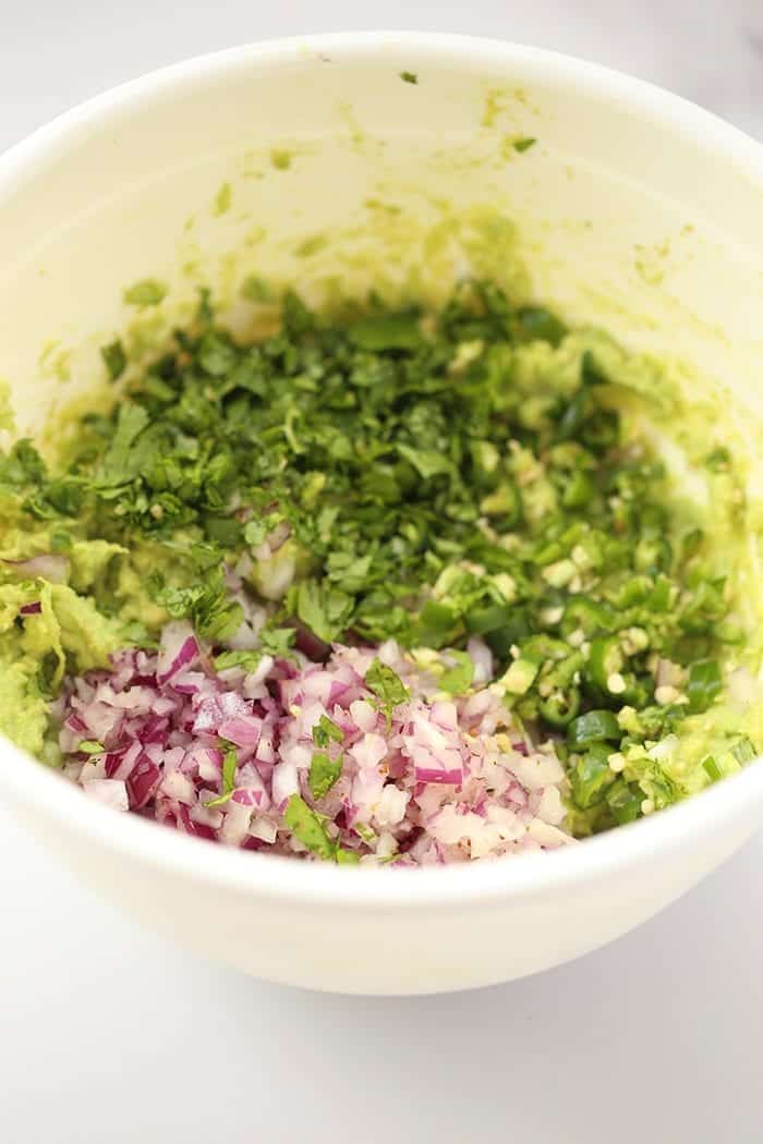1. Mash up avocados in a bowl.