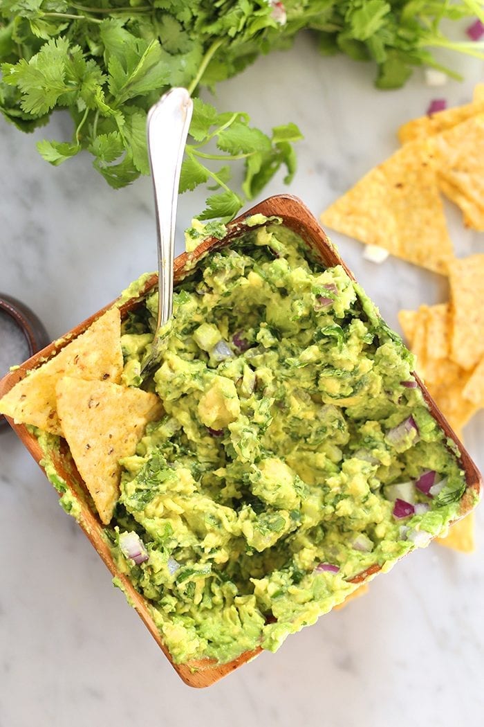 We need to chat about the life-changing part of this guacamole… the cilantro. As I’m sure some of you may have noticed if you’ve been following THM for some time, my recipes almost never include cilantro. Cilantro option? Sure. But never mandatory.