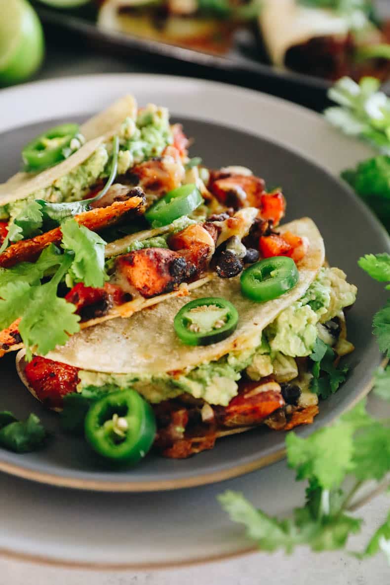 Sweet potatoes are so versatile and can be used in a wide array of both sweet and savory recipes. I also love using them in vegetarian recipes since they’re a nice hearty veggie that keeps you feeling full. Paired with the protein from black beans, these sweet potato and black bean tacos are the perfect vegetarian taco recipe.