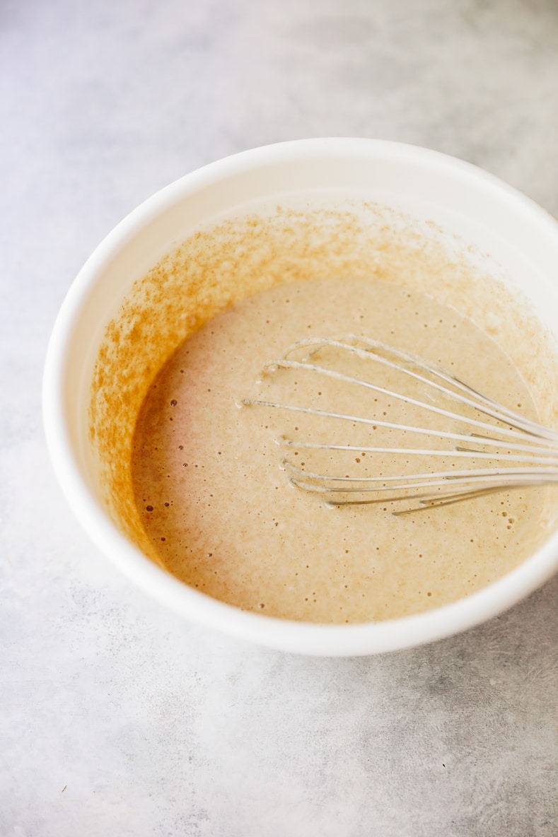 1. Don’t overmix!!! I can’t stress this enough. Once your wet ingredients are incorporated into your dry ingredients, stop whisking! It’s tempting to keep going but the gluten from the whole wheat flour will strengthen and this will make a more bread-like pancake instead of a fluffy pancake.