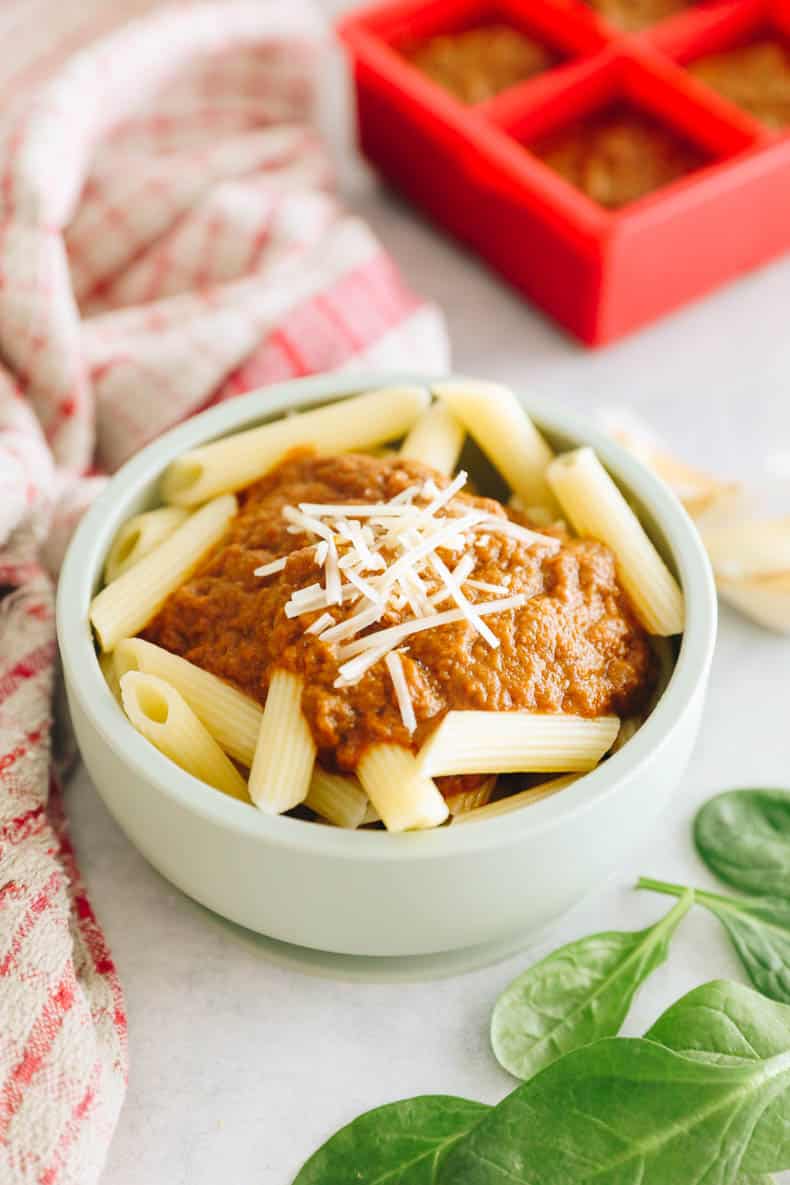Alternatively you can freeze your hidden veggie pasta sauce in any airtight container in the freezer.