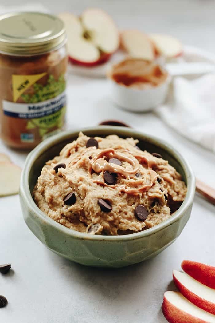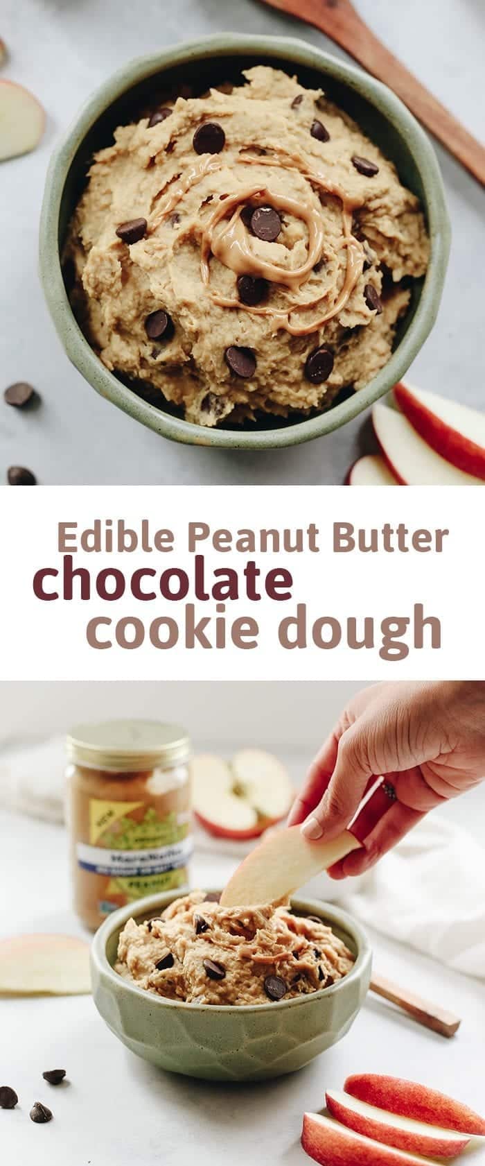 If you want to eat it, I say go for it! Dream big, my friends. But if you can make a substitute that tastes as delicious, and also doesn’t give you a sugar crash, why not try it? If it can fuel my body, AND my soul, I am sold. Enter: edible peanut butter chocolate cookie dough!