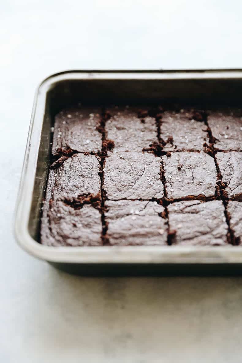 - Allow to cool for 20 minutes before cutting and removing from pan. I like to cut into 9 brownies (3 x 3)
