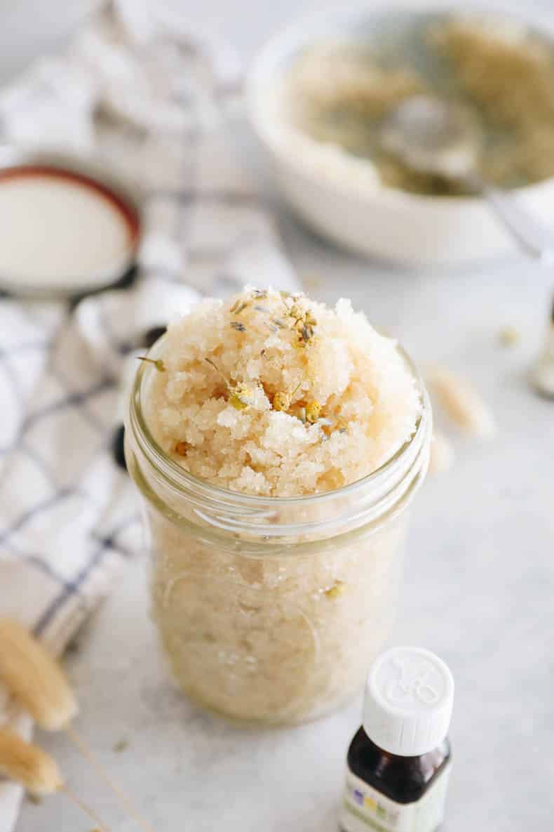 For a relaxing spa experience, try out this vanilla lavender sugar scrub.