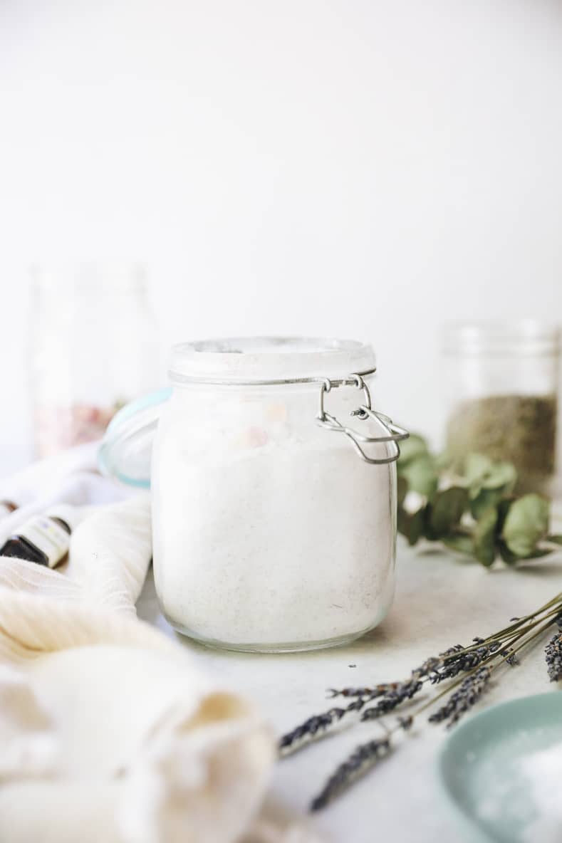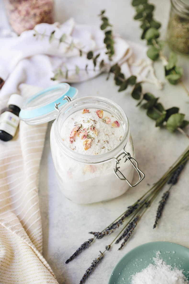 I recommend using a spoon to scoop out your bath salts or pour directly from a mason jar to prevent getting any cross-contaminated fingers in there.