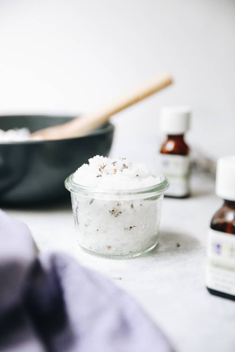 Salt scrubs tend to be a bit more abrasive on the skin so if you have sensitive skin, I would stick to a sugar scrub (I like this homemade sugar scrub with brown sugar), however if you’re looking for something a bit more intense, salt scrubs are the way to go.